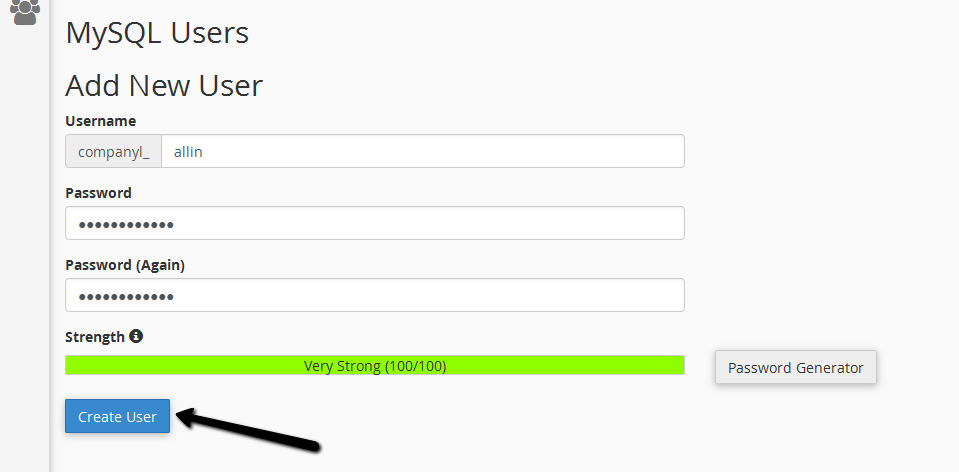 - 3. Create a new user and password. The name can be anything, but you'll need it later.
