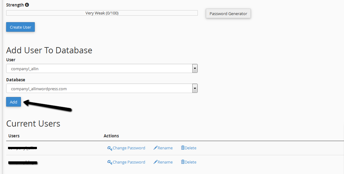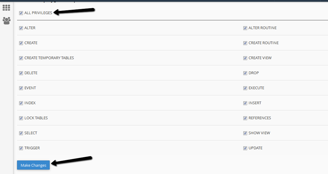 - 4. Add this user to the database. Give your new user access to all privileges.
